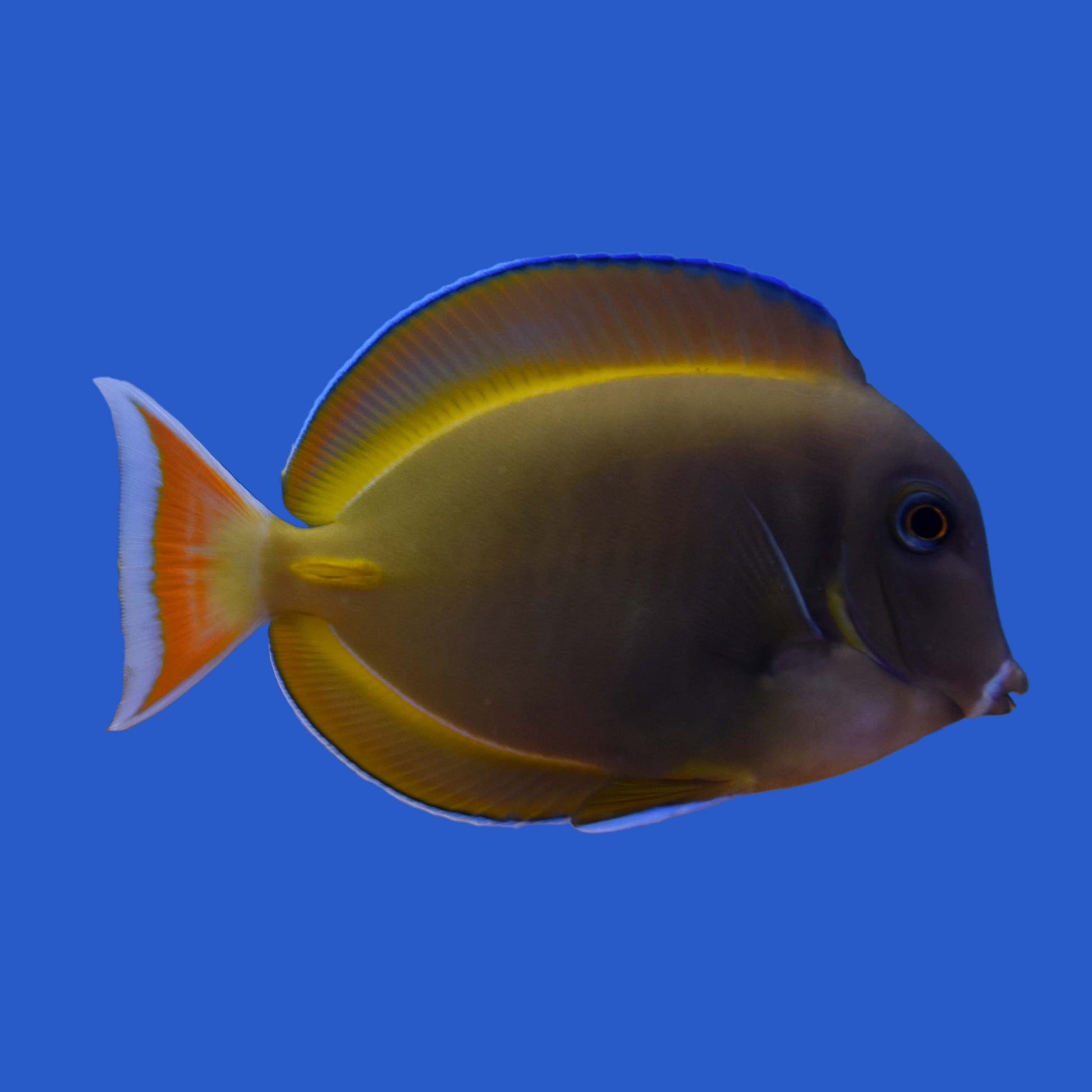 The Achilles Hybrid Tang, a cross between the Achilles Tang (Acanthurus achilles) and the Whitecheek Tang (Acanthurus nigricans), features a striking combination of the vivid orange and black coloration of the Achilles Tang with the contrasting black and white tones of the Whitecheek Tang. This hybrid retains the algae-grazing traits of its parents and adds a unique visual appeal to marine aquariums. While generally reef safe, it may display territorial behavior, especially towards other tangs, and requires ample swimming space and live rock for grazing. Ideal for well-established large reef tanks, this hybrid offers both beauty and functionality.