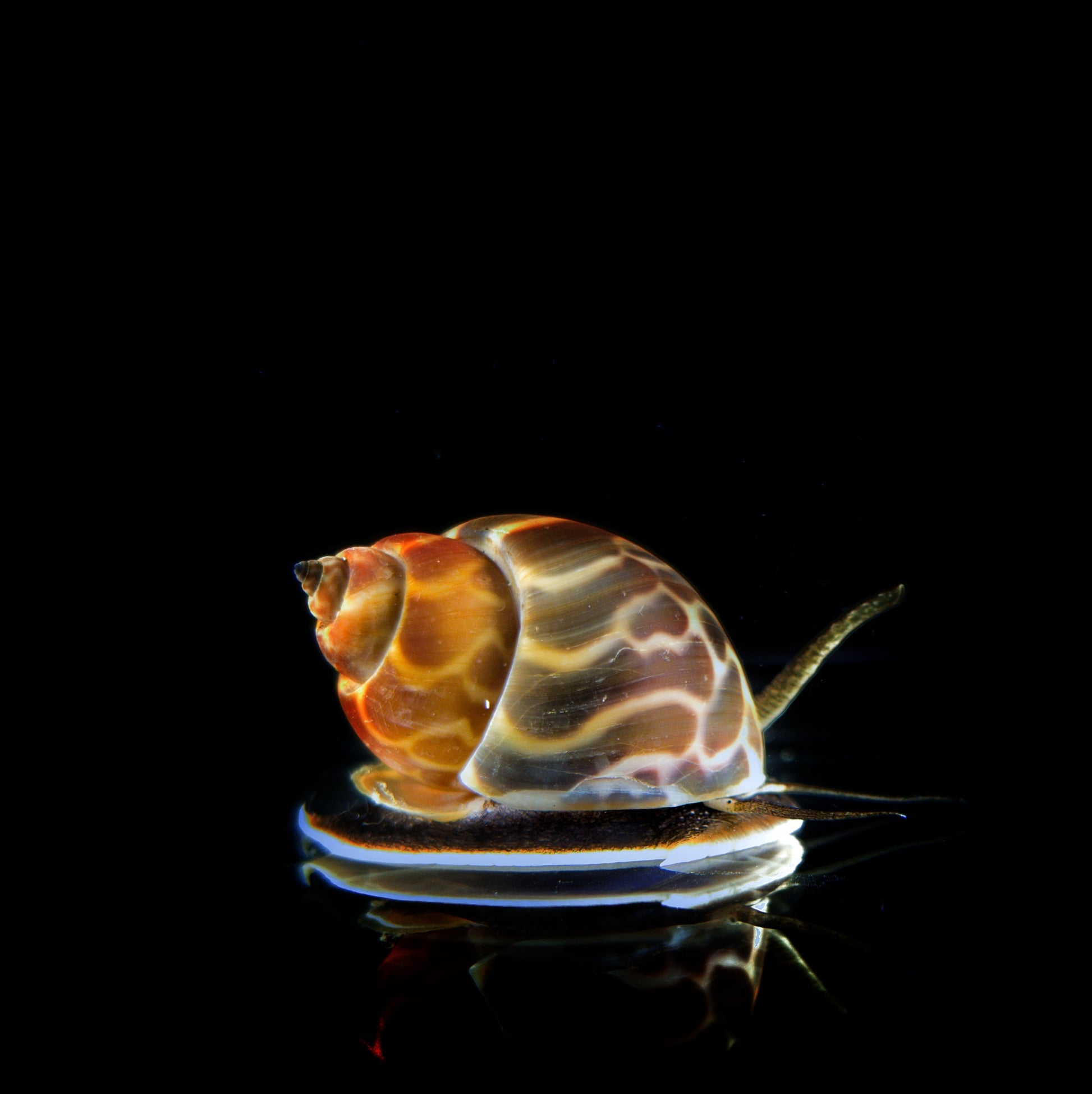 Nassarius snails are also known as Dog Whelks. They are peaceful, reef compatible, and good for saltwater beginners. They can grow up to 3/4 inch (2 cm) in size and live for two years or more. They are also known as Zombie Snails because they rise from the sand to eat food when they smell it. Nassarius snails eat algae, shrimp, garlic, and mussels. They should be acclimated slowly using a drip system.
