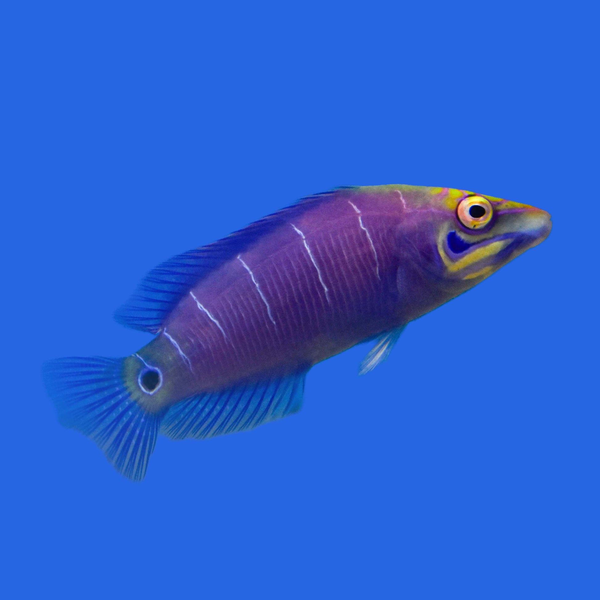 The Eight Line Wrasse (Pseudocheilinus octotaenia) is a stunningly colorful fish known for its vibrant appearance, featuring eight distinctive horizontal lines that run along its sleek body. This active species showcases a beautiful mix of blue, yellow, and green hues, making it a striking addition to any marine aquarium. The Eight Line Wrasse is reef safe, posing no threat to corals or invertebrates, which makes it an excellent choice for reef setups. It thrives in environments with plenty of live rock for hiding and foraging, and it appreciates stable water conditions. Hardy and relatively easy to care for, this wrasse is suitable for both novice and experienced aquarists, adding lively activity and vibrant color to any aquatic display.