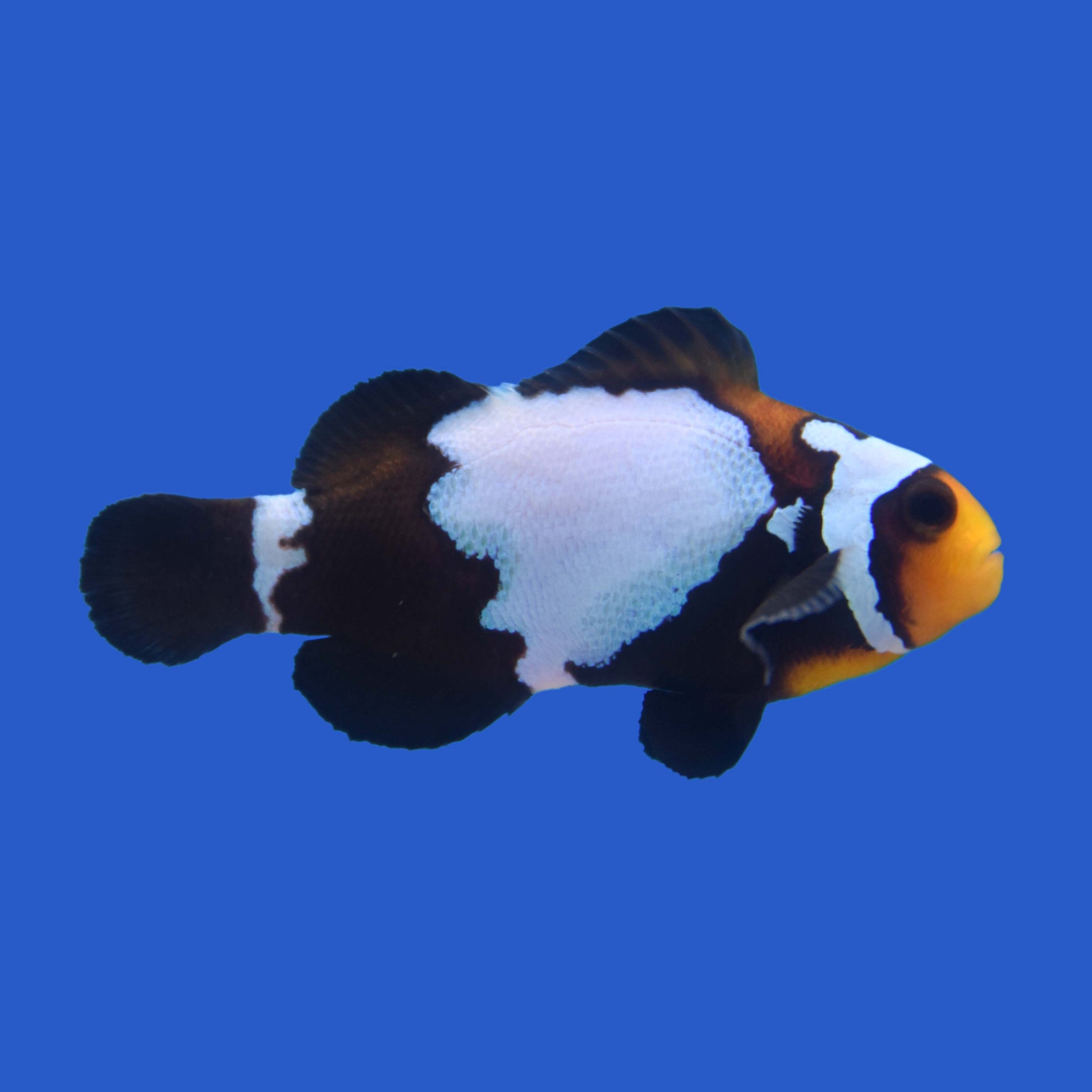 Phantom Snowflake Clownfish are generally considered reef safe, meaning they can coexist peacefully with corals and other invertebrates commonly found in reef environments. However, as with all clownfish, caution should be exercised when introducing them to anemones or other potentially aggressive tankmates. These clownfish are known for their hardy nature and peaceful temperament, making them suitable for both novice and experienced aquarists. They exhibit playful behavior and can form symbiotic relationships with certain species of anemones, though they can also thrive without one in captivity. Providing a well-balanced diet and a suitable environment with plenty of hiding spots will help ensure the health and happiness of the Phantom Snowflake Clownfish. With their unique and captivating appearance, these clownfish are sure to become a centerpiece in any marine aquarium, adding beauty and intrigue to the underwater landscape.