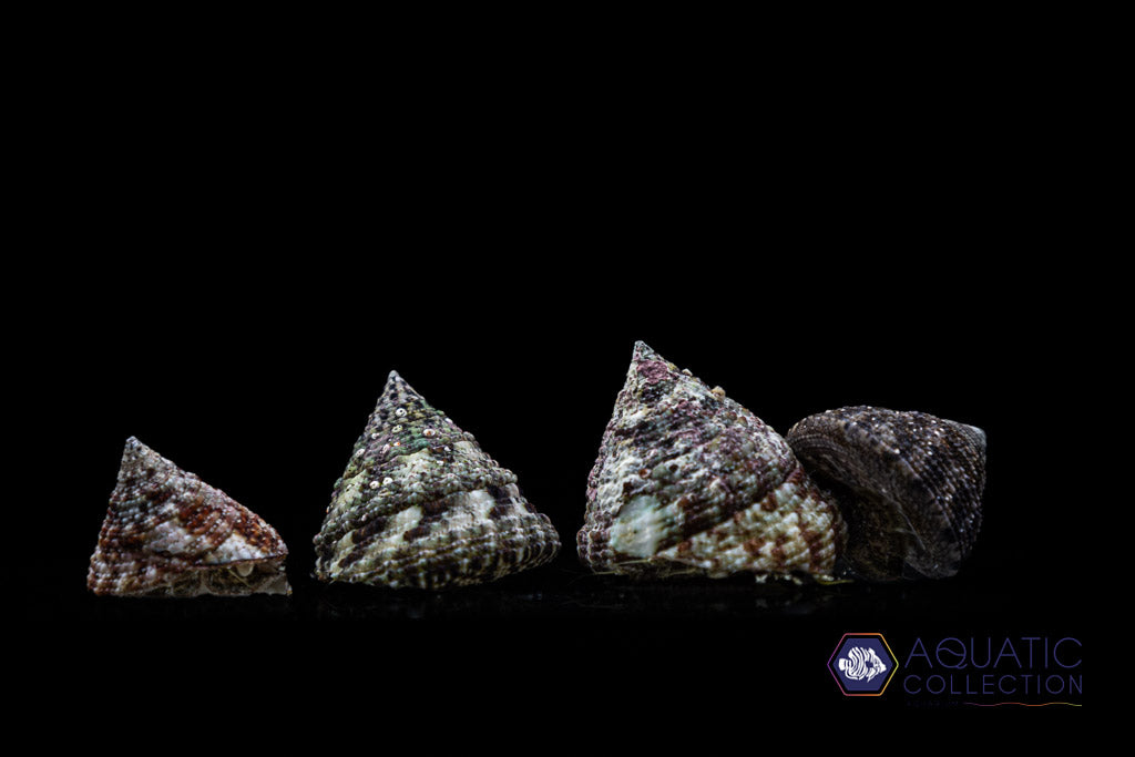 The Blackfoot Trochus Snail, also called Turban Snail, is liked by many aquarist because it is easy to care for and also cleans up the aquarium by eating algae, cyanobacteria, and diatoms on rocks. Generally you should keep one trochus for every 2-3 gallons of water in the tank. Like other invertebrates, the trochus is sensitive to high nitrate levels and cannot handle copper-based medication.